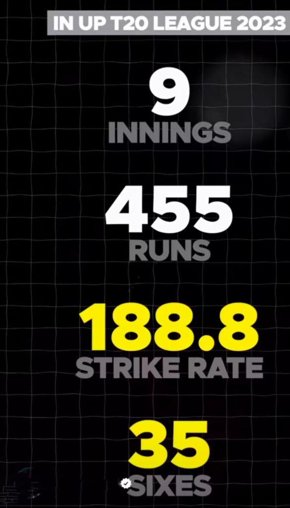 Then he play his first Ranji debut match in 27 January 2020. At the age of 16 UP team at age 20, he gained attention in the UP T20 League.