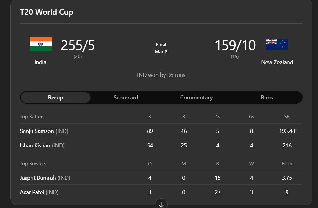 The T20 World Cup 2026 Final was a one-sided and dominant performance by India against New Zealand at the Narendra Modi Stadium in Ahmedabad.